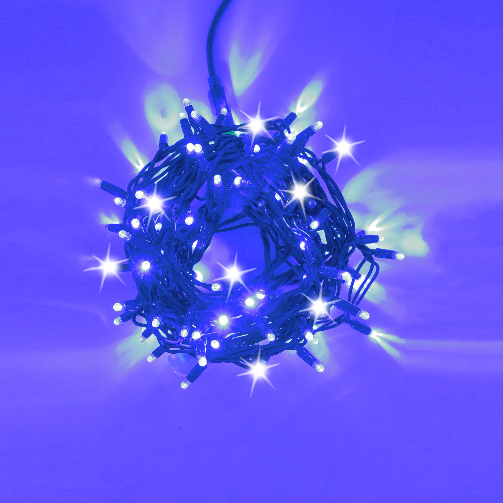 Stringa 10m 230V con flash | cavo blu | catena 120 led (20 flash)